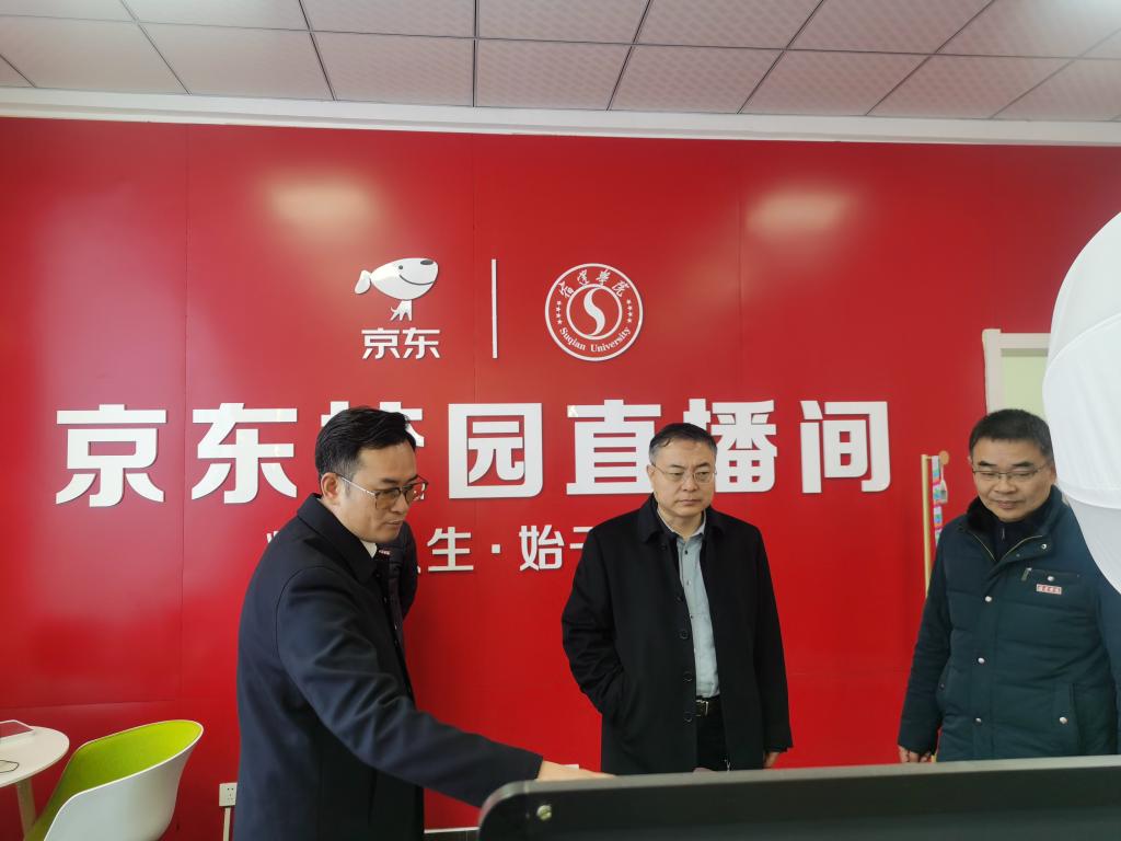 为全面深化产教融合,持续推进现代产业学院建设,1月3日,学校党委书记高峰,党委委员、副校长安涛带领教务处、合作发展处、经济与管理学院、传媒学院负责同志一行6人到宿迁学院考察学习京东现代产业学院建设情况。