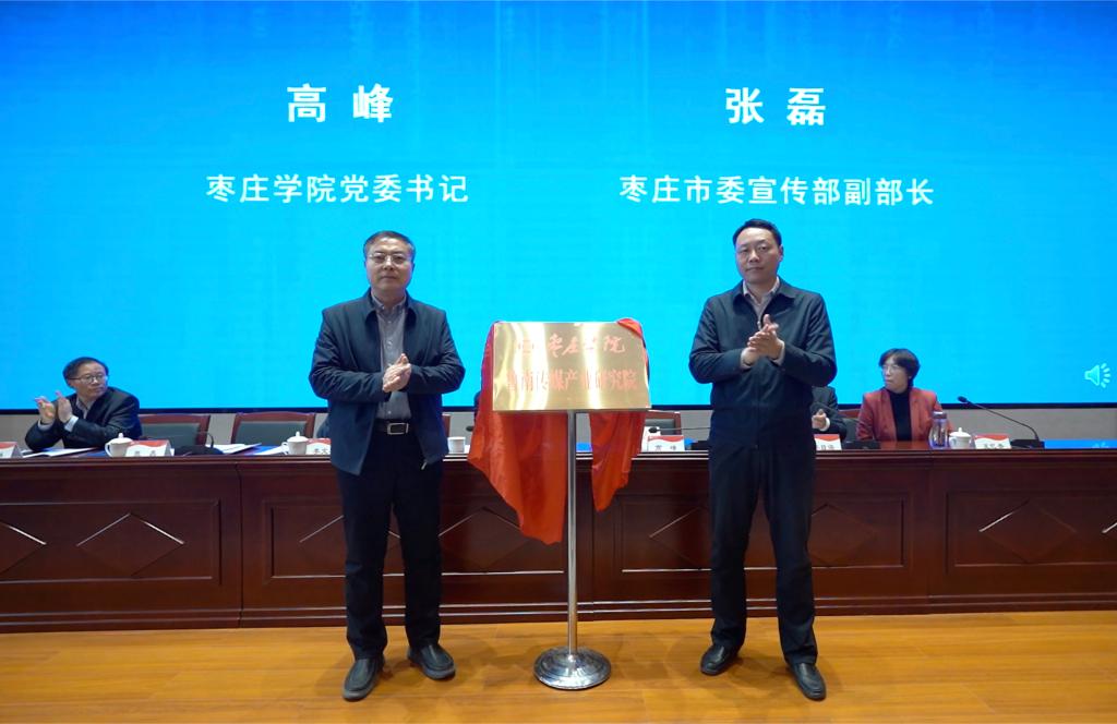 高峰和张磊为鲁南传媒产业研究院揭牌。