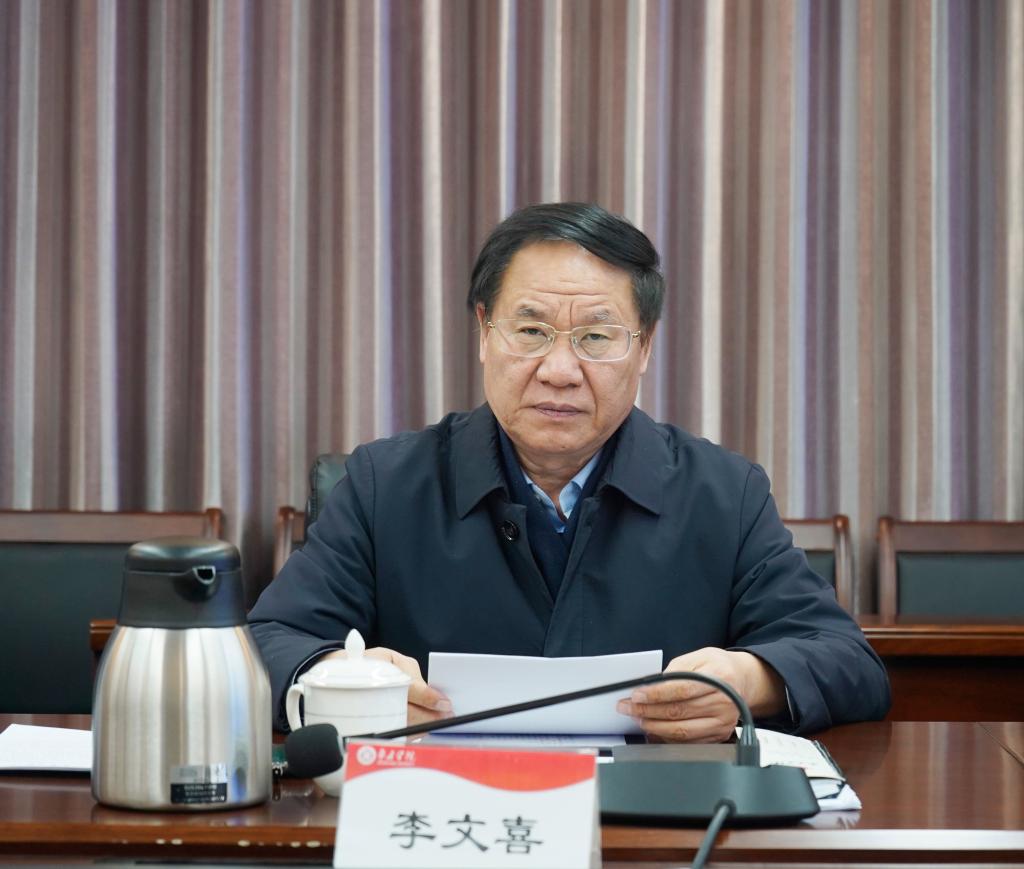 李文喜向学术委员会汇报了2023年学校在科学研究、学科建设、学风建设和学术生态营造等方面工作取得的成绩。他强调,学术委员会是校内最高学术机构,在学校发展规划制定、人才培养、学科专业建设、职称评定和岗位评聘、学术制度建设等方面发挥了重要作用,切实保证了学术民主与公正,维护了学术诚信,营造了良好学术氛围,有力地支持了学校科学发展。