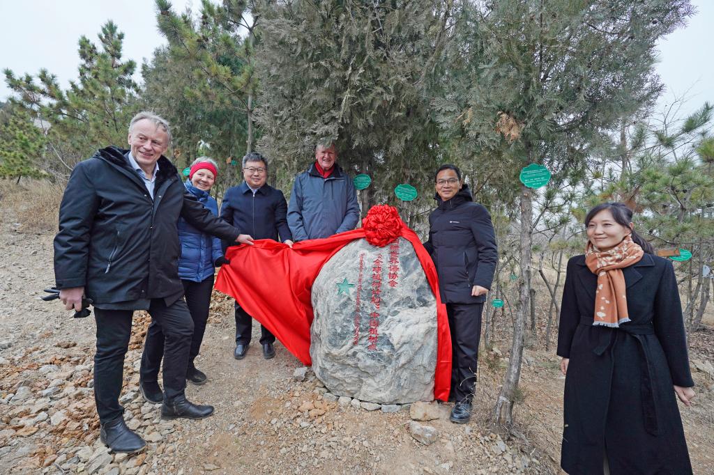 邓肯夫妇,冰岛驻华使馆原公使衔参赞拉格纳尔,中国外文局亚太中心副主任中华全国世界语协会副会长王汉平,易倍emc官网党委委员、副校长丰雷,中华全国世界语协会秘书长陈吉共同为国际世界语协会“全球植树计划”中国植树点揭幕。