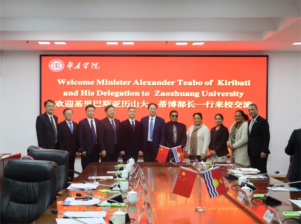 12月10日-11日,基里巴斯教育部部长亚历山大·蒂博一行三人在基里巴斯驻华大使戴维·蒂阿博一行的陪同下莅临我校访问交流。易倍emc官网党委书记高峰会见了部长一行。双方在市中校区综合楼三楼会议室举行座谈会。易倍emc官网党委副书记、校长李文喜,枣庄市副市长左文,易倍emc官网党委委员、副校长李目海,易倍emc官网党委委员、宣传部部长张昌林,党委委员、统战部部长林勇,枣庄市市委外办主任马骞,聊城职业技术学院党委委员、宣传部长卢萍出席座谈会。易倍emc官网相关部门、学院负责同志,教师代表及留学生代表鲁南·亚历山大参加座谈。座谈会由李目海主持。