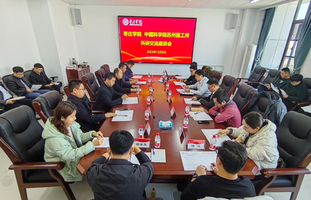 为进一步强化与中科院苏州医工所的学术交流与合作,12月8日下午,我校与中科院苏州医工所在薛城校区力行楼519会议室召开科研交流座谈会,校党委委员、副校长李目海出席会议并讲话。会议特邀中科院苏州医工所研究员、博士生导师戴亚康,中科院苏州医工所研究员、博士生导师周志勇,中科院苏州医工所副研究员彭博,中科院苏州医工所副研究员耿辰等一行7人出席座谈会。枣庄市立医院康复科主任杨长伟、枣庄市立医院神经外科主任秦浩、枣庄市立医院医学影像中心副主任刘斌、枣庄市妇幼保健院医学影像科主任张振华、枣庄市妇幼保健院儿童康复科主任倪祥强、枣庄市妇幼保健院儿童康复科副主任陆远以及健康工程技术研究院、机电工程学院、信息科学与工程学院、光电工程学院、人工智能学院等部门负责人及相关教师代表参加会议。