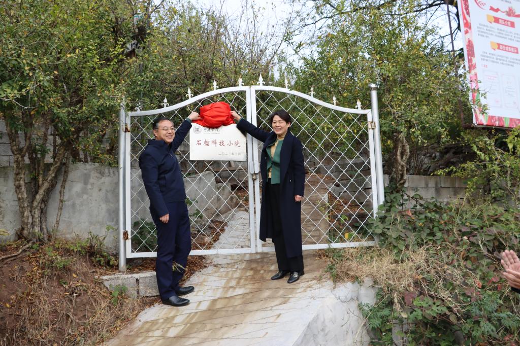 11月10日下午,易倍emc官网“石榴科技小院”成立暨揭牌仪式在枣庄市峄城区榴园镇王府山村举行。校党委书记高峰,党委委员、副校长李目海,组织部部长、科技处处长伊文涛,枣庄市农业农村局副局长王希荣,峄城区人大常委会主任徐刚,峄城区农业农村局局长孙文晋等出席,食品科学与制药工程学院、生命科学学院负责人及教师代表,富山石榴种植合作社负责人、社员代表参加揭牌仪式。仪式由党委委员、副校长李目海主持。