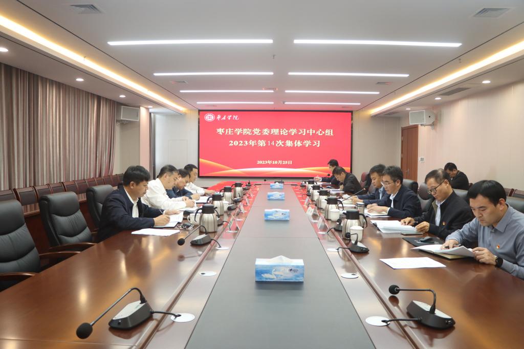 10月25日上午,学校党委理论学习中心组在薛城校区明理楼519会议室举行2023年第十四次集体学习,学习研讨习近平总书记对宣传思想文化工作作出的重要指示精神。校党委书记高峰主持并讲话。校领导李文喜、李目海、路绪剑、安涛、张昌林,林勇,纪委(监察专员办公室)、办公室、组织部和自然国学研究院相关同志参加学习。