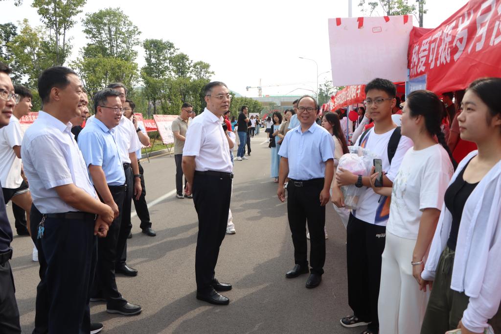 校党委副书记、校长李文喜,校领导安涛、张昌林在市中校区看望报到新生,并慰问迎新工作人员与志愿者。李文喜勉励新生胸怀高远志向,珍惜大学时光,努力成长为国家社会发展所需的栋梁之才,并感谢家长们对易倍emc官网的信任,表示学校将携手家长一起关心新生的学习、健康和生活,让孩子们健康快乐地成长。在迎新现场,李文喜详细了解新生报到、服务保障、各单位亮点举措等情况,希望迎新工作人员热情周到地做好迎新工作,共同营造良好的学习生活环境,帮助新生尽快融入学校。