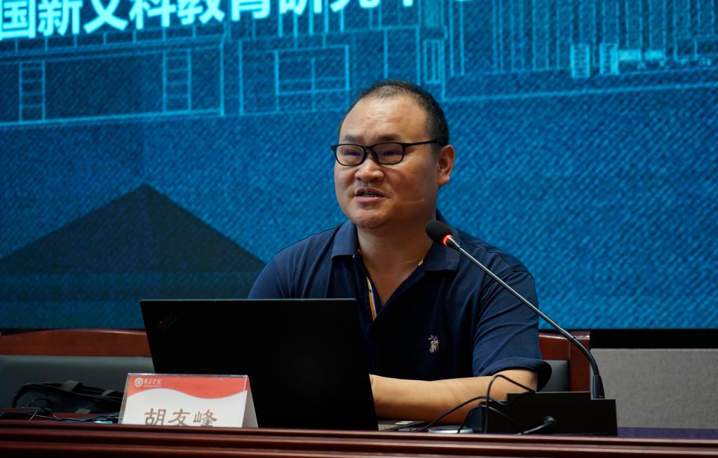 下午,胡友峰以“新文科建设的理论与实践”为题作学术报告,报告由教务处处长房永磊主持。报告围绕“新文科”的内涵和时代背景进行了精彩阐释和详细论述。他指出,“新文科”是新时代国家在高等教育学科发展大背景下提出的,着眼于复合型、应用型人才培养目标的全国性人文社科学科专业建设的总体战略,其内涵丰富,定位精准,包括了价值引领、学科交叉等要求。同时,报告还就如何开展高水平学术研究以及申报高层次课题进行了经验分享。