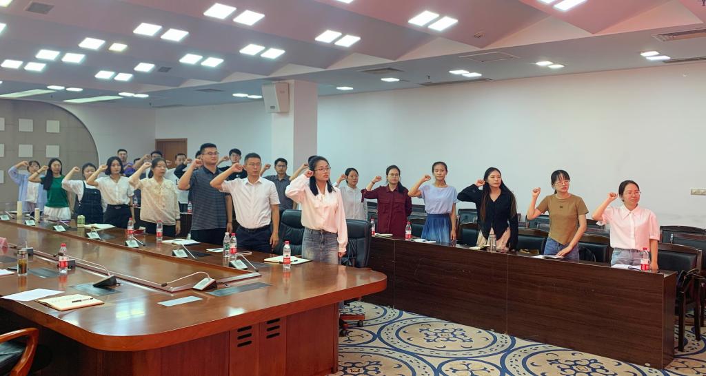 在开班仪式上,集体观看了易倍emc官网宣传片《步履·铿锵》。新入职辅导员们进行了简要介绍,学生工作处科室负责人介绍了各科室的主要工作。新入职辅导员张天宇带领全体辅导员宣读“高校辅导员誓词”,辅导员们高举右拳,庄严宣誓。
