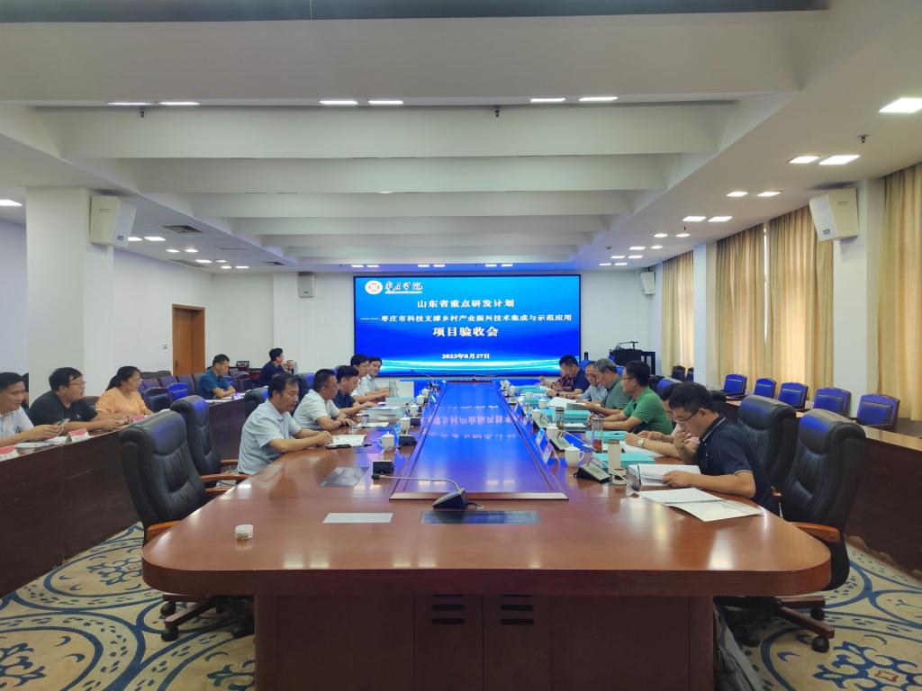 8月27日,山东省科技厅组织来自省内农业领域知名专家和财务审计专家,对由我校牵头承担的山东省重点研发计划“枣庄市科技支撑乡村产业振兴技术集成与示范应用”项目进行会议验收。校党委委员、副校长李目海,山东省科技厅农村中心业务科长武军,枣庄市科技局农社科科长谢明出席会议,科技处处长伊文涛、食品科学与制药工程院长张立华以及项目组成员等40余人参加会议。会议由武军主持。