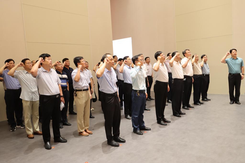 在讲解员引领下,全体领导干部逐一参观纪律教育、警示教育、廉洁文化3个专题展厅,认真聆听了党在不同时期加强自身建设的历程,特别是党的十八大以来全面从严治党取得的卓著成效以及“清廉枣庄”廉洁文化品牌建设亮点特色,仔细观看了近年来我市查处的领导干部职务犯罪和党员干部违纪违法典型案例的反腐案件图片、忏悔录、家书等展品和警示教育视频。一个个引人深思的腐败案例、一组组触目惊心的数字、一句句发自肺腑的沉痛忏悔,让大家在“沉浸式”观展中进一步知敬畏、存戒惧、守底线。在宣誓厅,全体党员干部面对党旗庄严宣誓,重温入党誓词,不忘党员初心,坚定理想信念,强化使命担当。