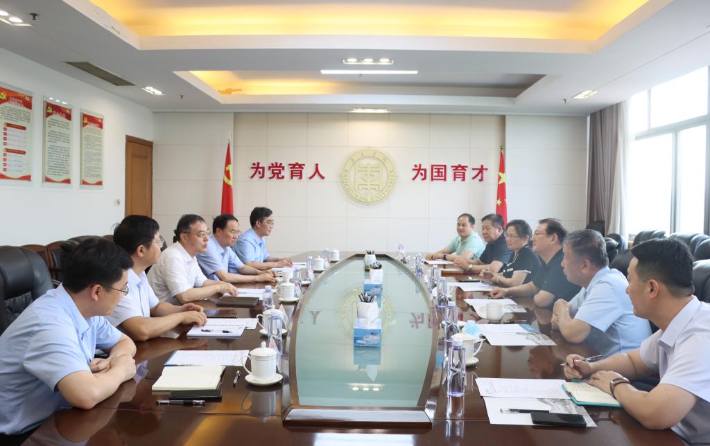 7月10日下午,山东工程职业技术大学校长吴梦军、党委书记孔祥云,易倍emc官网原党委书记胡小林一行6人来我校考察交流。我校党委书记高峰、校长李文喜热情接待了吴梦军一行,并在八楼会议室举行座谈会。校党委委员、副校长李目海、安涛,办公室负责同志参加座谈会。