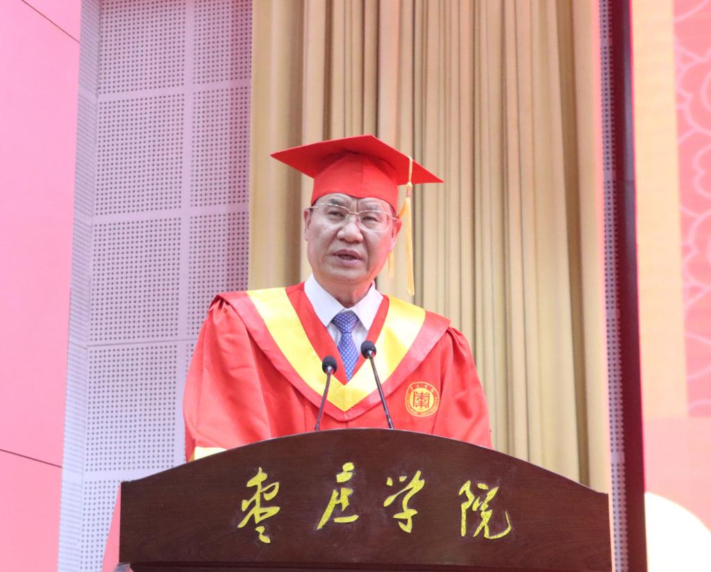 李文喜以《梦想启航 奔赴山海》为题致辞,代表学校向顺利完成学业的2023届毕业生表示热烈祝贺,向辛勤培育学生成长成才的老师以及社会各界表示崇高敬意。他指出,学校持续推进“建设国内一流应用型大学”的宏伟蓝图和生动实践,跑出了高水平应用型大学建设的“枣院加速度”。四年来,同学们凝聚团队力量、奋勇争先;矢志不渝、勇登高峰;在创新创业路上孜孜不倦,在服务社会中实现个人价值,创造了属于自己的靓丽青春,也频频为学校增光添彩。同学们不仅是学校追赶超越的参与者,更是自我逐梦的践行者。正是同学们的拼搏进取、成长进步让易倍emc官网生机盎然、充满活力。