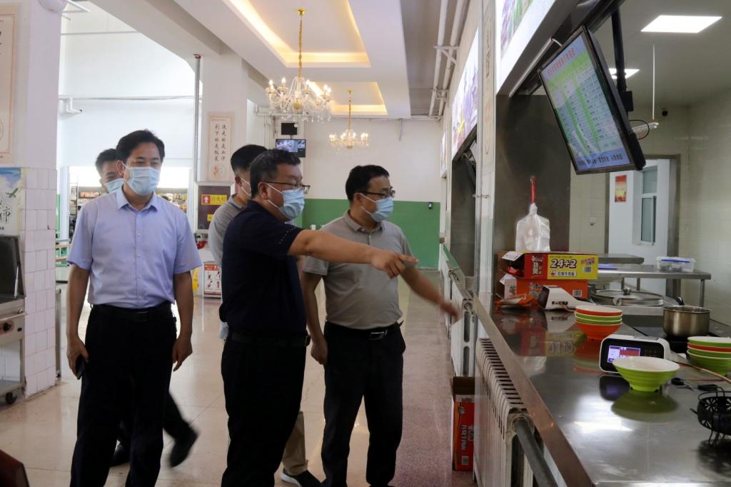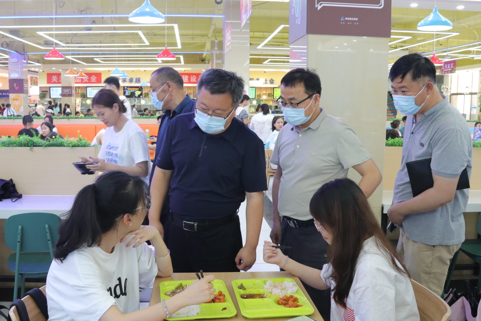 为贯彻落实全省校园夏季食品安全工作视频会议精神,确保我校夏季校园食品安全,6月13日中午,校党委委员、副校长丰雷深入市中校区各学生食堂、校医院开展安全检查。后勤服务处班子成员及饮食服务中心负责人陪同检查。