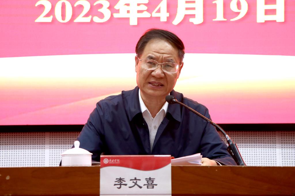 4月19日上午,我校在综合楼报告厅举行学习贯彻习近平新时代中国特色社会主义思想主题教育专题读书班开班仪式,持续推动广大领导干部全面、系统、深入学习习近平新时代中国特色社会主义思想。校党委副书记、校长李文喜出席开班式并作动员讲话。省委第二十五巡回指导组有关同志、学校党委班子成员、全校副处级以上干部及主题教育各工作组成员参加仪式。开班式由校党委副书记曾宪明主持。