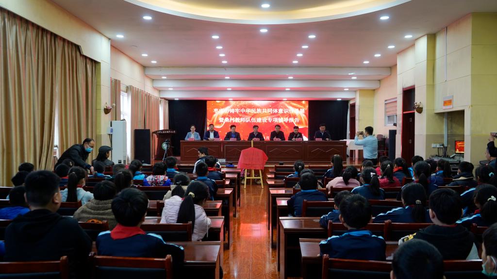 4月4日,由易倍emc官网与山亭区政府联合举办的“践行二十大,谱写新篇章”枣庄市铸牢中华民族共同体意识作品展暨山亭区桑村镇教师队伍建设专项辅导报告在山亭区桑村镇中心小学举行。易倍emc官网党委委员、副校长安涛,党委委员、统战部部长林勇,山亭区副区长戴娟、区教体局局长唐志清,桑村镇党委书记杨昌照、副镇长吴婷婷,易倍emc官网统战部、教务处相关负责人,以及易倍emc官网美育浸润行动计划支教团师生代表参加活动。