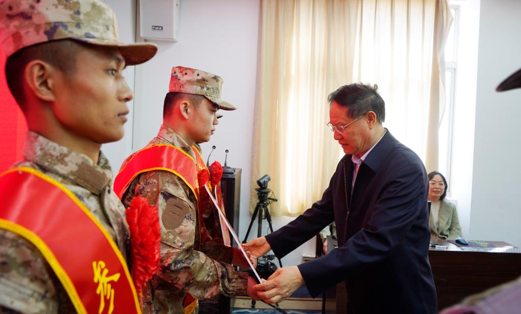 李文喜在讲话中对同学们通过层层选拔成为预征新兵表示祝贺,并代表学校提出三点希望:一是要做一名忠于党、忠于祖国的好战士,圆满完成党和人民赋予的使命和任务。要时刻牢记习近平总书记提出的“建设一支听党指挥、能打胜仗、作风优良的人民军队”的总体要求,热爱伟大祖国,胸怀忧国忧民之心、爱国爱民之情,不断奉献祖国、奉献人民、奉献军队;要心怀担当,开拓进取,在实现中华民族伟大复兴强军梦的同时把自己融入到实践中,与时代同行、与祖国共进,在强军报国的新征程上作出枣院学子应有的贡献。二是要磨练意志,锤炼品质,主动迎接各种困难和挑战,在不断战胜自我的过程中实现自己的梦想。同学们在接下来的军旅生活中,要时刻牢记对祖国和人民的责任担当,敢于面对各种困难和挫折,自觉培养不畏艰难、顽强奋进的意志品质,勇做走在时代前列的奋进者、开拓者、奉献者,树立崇高的理想信念和赤胆忠心的爱国情怀,敢于开拓创新,在劈波斩浪中开拓前进,在披荆斩棘中开辟天地,在攻坚克难中创造业绩,为巩固国防建设、维护领土主权做出贡献,争取早日立功受奖。三是要牢记易倍emc官网“兼爱、尚贤、博物、戴行”的校训,建功立业,为校争光。要持续加强政治知识、军事知识的学习,加强思想作风、意志品质的淬炼,加强爱国情怀、远大理想的培树,让枣院精神在军营闪光,为学校争光添彩,努力成为一名政治合格、军事过硬的复合型人才,成为一名有担当、有责任的优秀青年。