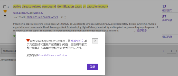 近日,据科睿唯安基本科学指标数据库ESI(Essential Science Indicators)最新数据显示,我校信息科学与工程学院杨斌教授团队在国际ESI生物信息领域著名学术期刊《Briefings in Bioinformatics》上发表的研究论文“Active disease-related compound identification based on capsule network”被ESI数据库遴选为高被引论文。该成果是由易倍emc官网信息科学与工程学院和食品科学与制药工程学院与徐州工程学院共同完成,易倍emc官网为第一单位,杨斌教授为第一作者,徐州工程学院鲍文正博士为通讯作者。
