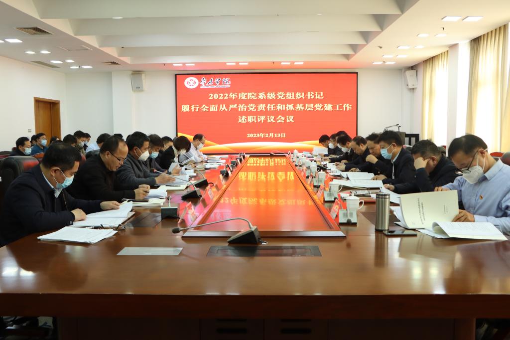 根据省委办公厅、省委组织部有关通知精神和省委教育工委工作要求,2月13日下午,我校在综合楼三楼会议室召开2022年度院系级党组织书记履行全面从严治党责任和抓基层党建工作述职评议会议,深入学习贯彻习近平新时代中国特色社会主义思想和党的二十大精神,进一步压实各级党组织书记履行全面从严治党责任,推动全面从严治党向基层延伸,切实提高党的建设质量。校党委书记曹胜强主持会议并讲话,校领导李文喜、曾宪明、李目海、路绪剑、丰雷、安涛、张昌林、林勇出席会议。相关职能部门负责人、全体院系级党组织书记、市级以上“两代表一委员”、部分党支部书记和基层党员群众代表等参加会议。