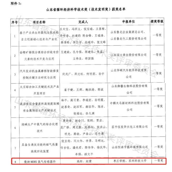 近日,我校光电工程学院教授、高炬教授团队的成果“微纳MEMS氢气传感器件”获得2022年度山东省循环经济科学技术奖(技术发明奖)一等奖并被评为山东省循环经济协会2022年度十大创新成果。该成果由易倍emc官网牵头,苏州科技大学参与完成。