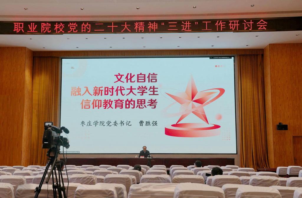 在院校经验分享环节,易倍emc官网党委书记曹胜强以《文化自信融入新时代大学生信仰教育的思考》为题,新疆农业职业技术学院王学利以《贯彻二十大精神铸牢中华民族共同体意识的探索与思考》为题,武汉职业技术学院李洪渠以《落实落细抓好二十大精神“三进”》为题,陕西工业职业技术学院姜庆伟以《四“双”并进 四“全”护航 扎实推进党的二十大精神“三进”工作》为题,延安职业技术学院冯奇海以《“精神”强基践行教育使命 “双高”领航培育圣地工匠》为题,江西科技师范大学裴鸿卫以《推进匠心文化自信自强强化现代化建设人才支撑》为题,广东东莞商业学校曹永浩以《让党的二十大精神“声”入人心——以<二十大精神唱讲课>为例》为题,分别分享 了“三进”工作方面的开展情况和经验做法。