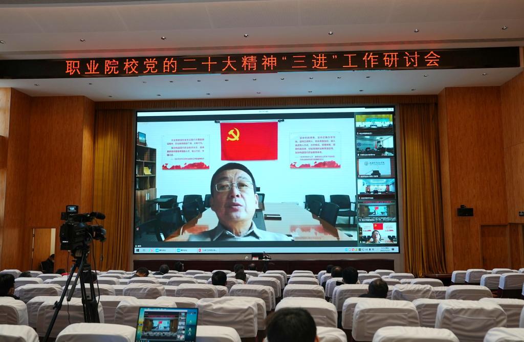 教育部职成教司副司长谢俐指出,本次研讨会对交流典型经验、发挥示范引领,推动职业院校扎实做好“三进”工作具有积极意义。做好党的二十大精神“三进”工作,重点要提高思想认识、明确工作任务、抓好贯彻落实,把“为什么进”“进什么”“怎么进”的问题想清楚,把党中央的要求领会好、落实好。