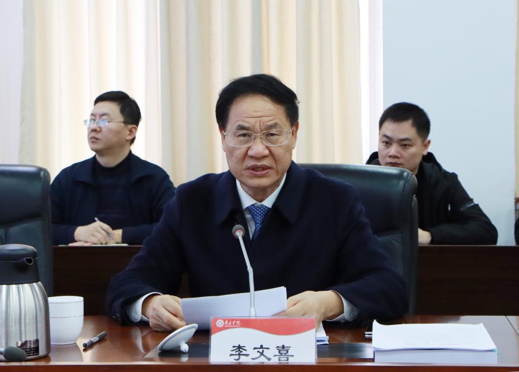 李文喜代表学校致辞,对与会各位专家、领导表示衷心感谢,并从学校应用型大学建设、人才培养、产教融合基础,社会服务成果、创新成果等方面介绍了学校的相关情况,突出阐述了我校产业学院建设的特色模式及成效。李文喜指出,工信部中小企业发展促进中心组织开展专精特新产业学院项目,对于我校充分发挥以现代产业学院为载体,促进产教融合、科教融汇,持续提升人才培养质量具有重要作用和意义,学校会全力支持本次调研的两个专精特新产业学院项目申报及后续建设工作。