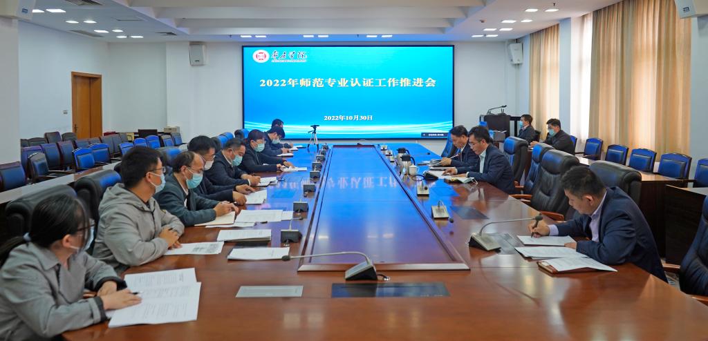 10月30日下午,我校在综合楼三楼会议室召开线上线下师范类专业认证工作推进会。校长李文喜出席会议并讲话,教务处及师范类专业学院负责人、承担通识教育必修课和教师教育必修课的学院负责人参加会议。会议由校党委委员、副校长安涛主持。