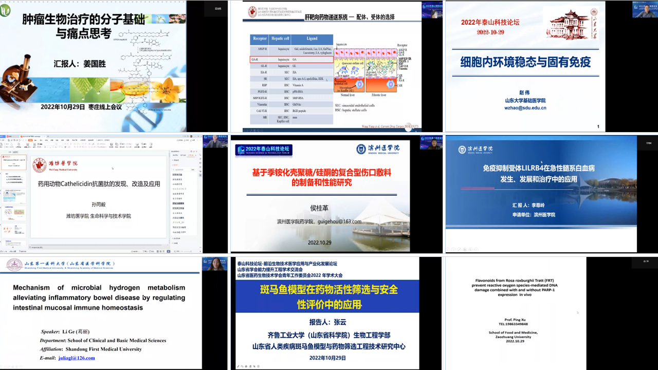 论坛特邀姜国胜教授、张利宁教授、高志芹教授、赵伟教授、孙同毅教授、侯桂革教授、李尊岭教授、葛丽教授、张云教授、徐萍教授10位生物医学领域知名专家学者,围绕肿瘤生物药物研发、免疫分子与重大慢性病、载药系统与靶向治疗、细胞内环境稳态与固有免疫、药用动物Cathelicidin抗菌肽改造应用、新型壳聚糖/硅酮复合型伤口敷料、免疫抑制受体白血病调控、微生物氢代谢调控、斑马鱼模型药物活性筛选与安全性、辐射损伤干预治疗作用机制等多个前沿学科领域进行了精彩的学术报告和深入的研讨交流,与会学者纷纷表示受益匪浅。