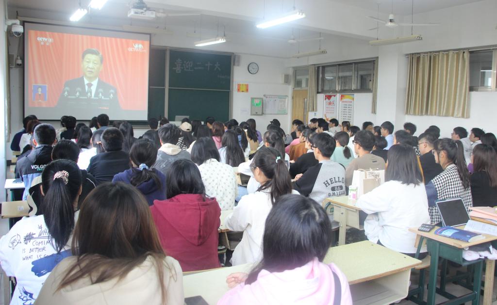 10月16日上午,中国共产党第二十次全国代表大会在北京人民大会堂隆重开幕。党的二十大是我们党进入全面建设社会主义现代化国家、向第二个百年奋斗目标进军新征程的重要时刻召开的一次十分重要的代表大会,备受全民瞩目。大会中的各项成果和奋斗目标激励着也感动着我校每一位师生。在观看大会直播、聆听习近平总书记高屋建瓴的二十大报告之后,师生们倍受鼓舞,倍感振奋,纷纷聚焦“新时代”“新使命”“新征程”等关键词,直抒大好时代机遇、畅叙未来发展宏图。