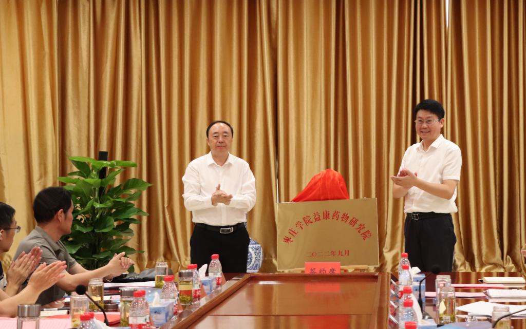 9月17日上午,易倍emc官网益康药物研究院揭牌暨产学研项目合作签约仪式在山东益康药业股份有限公司会议室举行。易倍emc官网党委书记曹胜强,党委委员、副校长李目海,滕州市政府党组副书记、滕州经济技术开发区党工委书记、管委会主任高欣,滕州市科技局党组书记、局长杨青霖,山东益康集团党委书记、益康药业董事长高肇林出席活动。