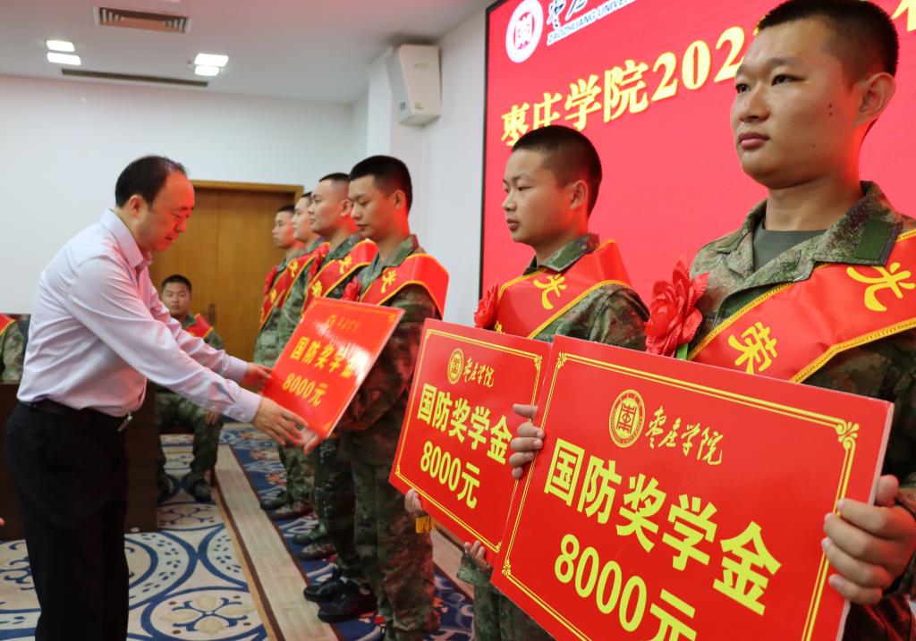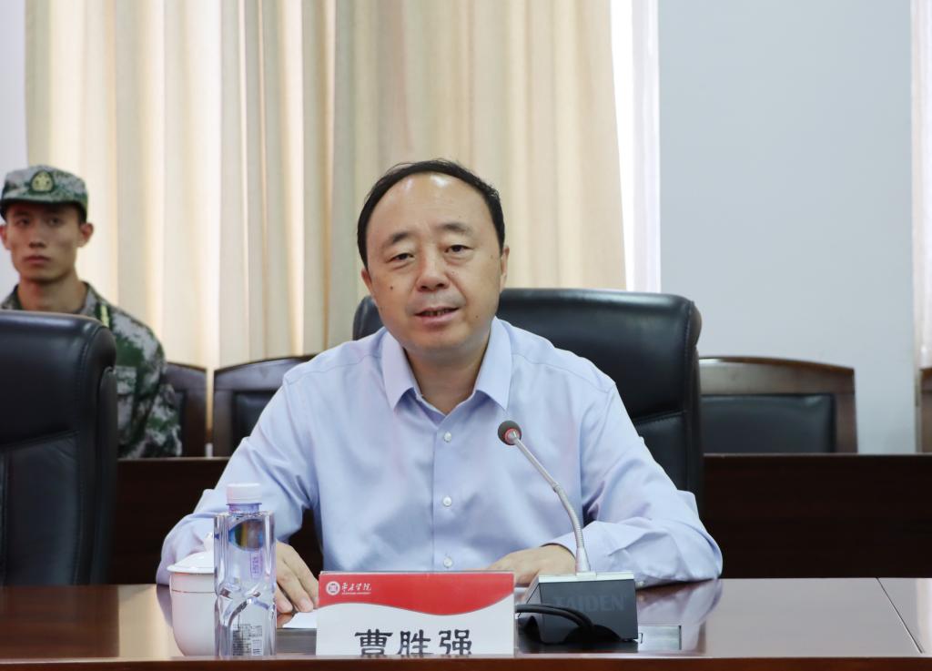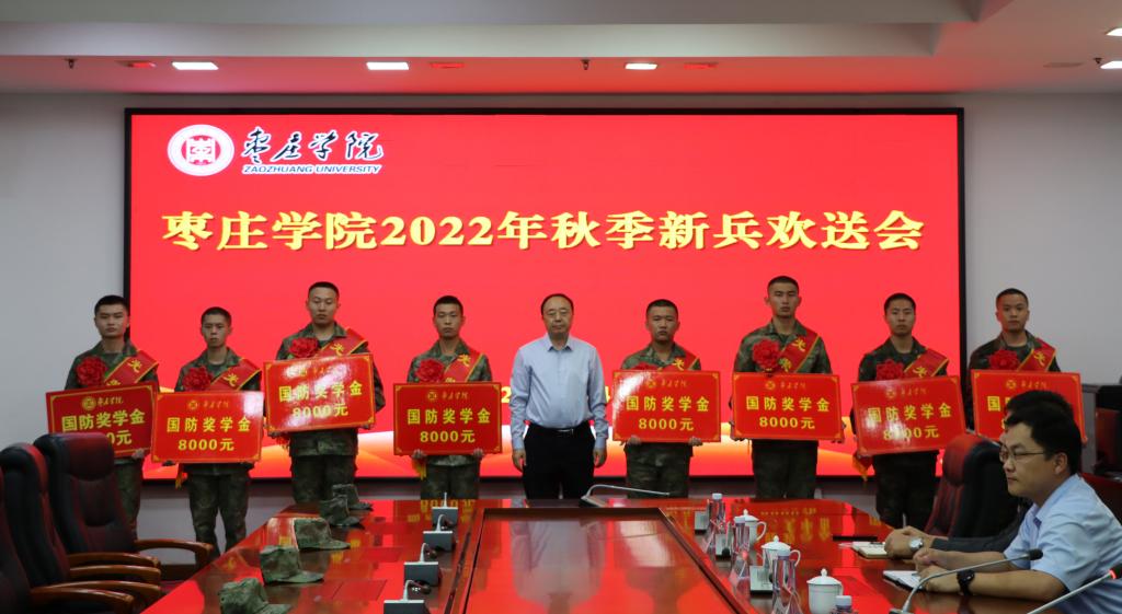 曹胜强在讲话中代表学校对同学们积极响应国家和学校号召,选择携笔从戎、参军入伍的行为给予高度赞扬和充分肯定,并提出三点希望和要求:一是要做一名忠于党、忠于祖国的好战士,圆满完成党和人民赋予的使命和任务。要时刻牢记习近平总书记提出的“建设一支听党指挥、能打胜仗、作风优良的人民军队”的总体要求,不断奉献祖国、奉献人民、奉献军队,在实现中华民族伟大复兴强军梦进程中,把自己融入到实践中,与时代同行、与祖国共进,以优异的成绩迎接党的二十大召开。二是要磨练意志,锤炼品质,主动迎接各种困难和挑战,在不断战胜自我的过程中实现自己的梦想。要时刻牢记对祖国和人民的责任担当,自觉培养不畏艰难、顽强奋进的意志品质,勇做走在时代前列的奋进者、开拓者、奉献者,敢于在劈波斩浪中开拓前进、在披荆斩棘中开辟天地、在攻坚克难中创造业绩,为巩固国防建设、维护领土主权做出贡献,争取早日立功受奖。三是要牢记“兼爱、尚贤、博物、戴行”校训,建功立业,为校争光。要以实现中华民族伟大复兴为己任,持续加强政治知识、军事知识的学习,加强思想作风、意志品质的淬炼,加强爱国情怀、远大理想的培树,让枣院精神在军营闪光,为校争光添彩,努力成为一名政治合格、军事过硬的复合型人才。