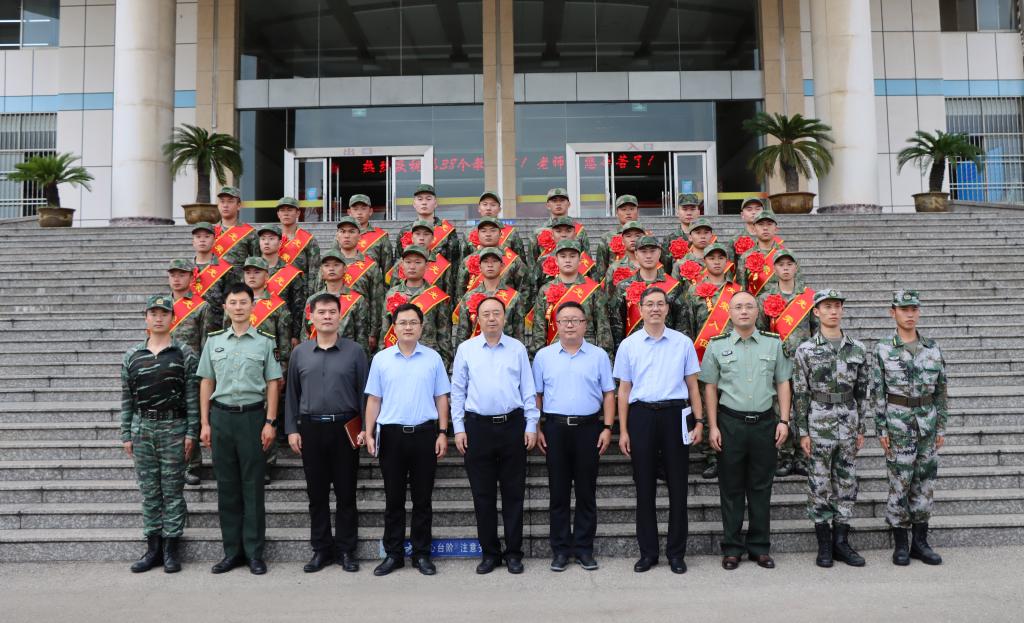 会后,与会领导与全体入伍新兵在综合楼前合影留念。