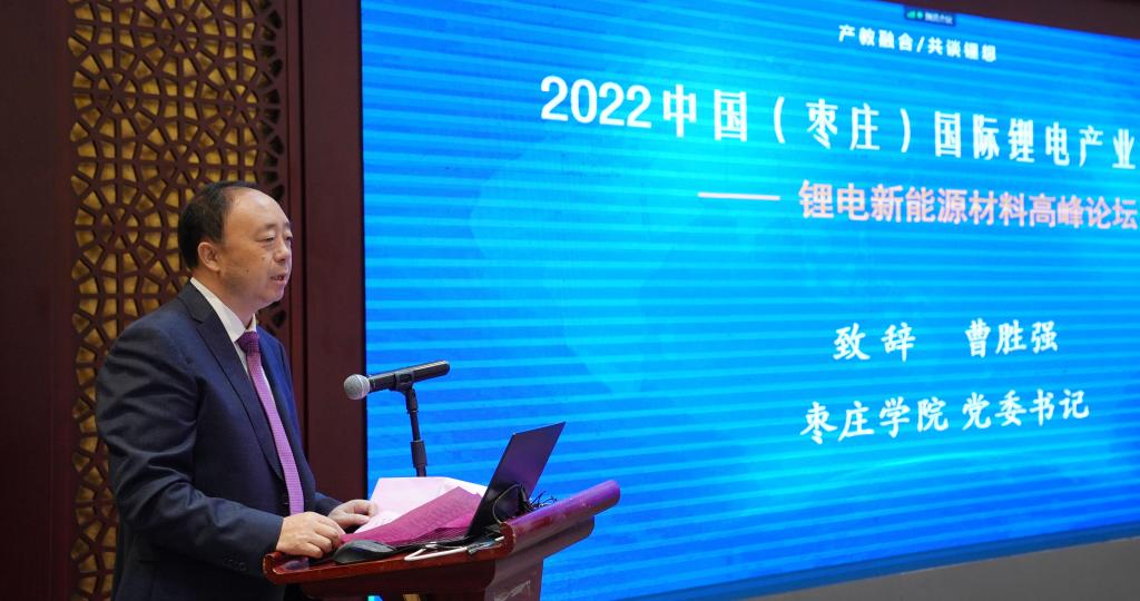 曹胜强在致辞中代表学校对参加会议的各位专家和嘉宾表示诚挚欢迎,对长期以来给予学校大力支持的各位专家学者以及社会各界表示衷心感谢,并从办学历史、办学规模、师资队伍、教学科研等方面介绍了学校的基本情况。他指出,作为一所地方本科院校,易倍emc官网高度重视对接产业、服务地方工作,不断推动学校人才培养、科学研究与地方经济社会发展需求相融合,建有枣庄市新能源产业学院暨易倍emc官网锂电产业学院等8个锂电相关科研及人才培养平台,在锂电材料、智能制造等方面积淀了较雄厚的科研实力,有效助推了新能源产业创新发展。乘着枣庄市大力发展锂电产业的东风,此次“锂电新能源材料高峰论坛”无疑是一次“聆听学术思想、感悟深奥学理、探索技术难题”的学术盛会,也必将激荡思想火花,激发创新灵感。衷心希望各位专家、学者利用此次会议畅所欲言,为枣庄市锂电产业发展建言献策,为易倍emc官网学科专业建设注入新的活力。