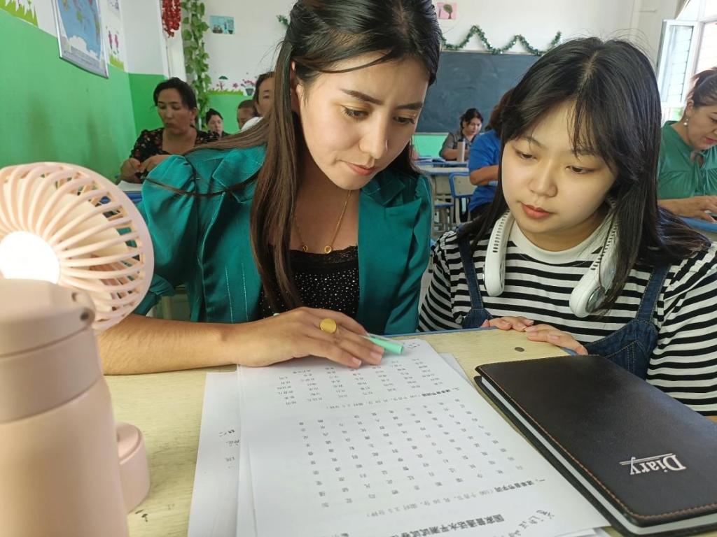 此次线下集中培训共有200名疏勒县中小学、幼儿园教师骨干教师参加。易倍emc官网普通话培训团队一行共14人,领队教师姜夫军、徐颖慧带领团队精心制定了培训方案,采取训前摸底、分层编班,强化语言培训、全真模拟、指导、训后测等方式进行培训。培训团队成员具有较强的语音感知能力与丰富的语言教学经验,在充分发挥自身知识优势的基础上,系统分析学员的民族语言特点及发音习惯,围绕考试题型与学员实际应用需求设计课程。培训过程中注重结合当地语音面貌,不断调整教学方案、策略,寻找在疏勒县精准推广普通话工作的着力点,搭建与参训学员们长期互动的桥梁,为学员提供可持续的普通话学习指导。