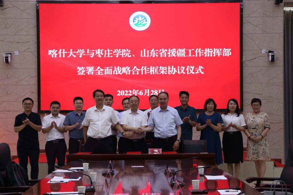 6月28日,校党委书记曹胜强带队赴喀什大学调研,并与喀什大学及山东省援疆工作指挥部签署全面战略合作框架协议。喀什大学党委副书记、校长亚克夫·吐尔地,党委常委、副校长买买提明·木沙,党委常委、纪委书记、监察专员郭绍文,山东省援疆工作指挥部党委副书记邓泽宇以及喀什大学相关部门负责人陪同调研。