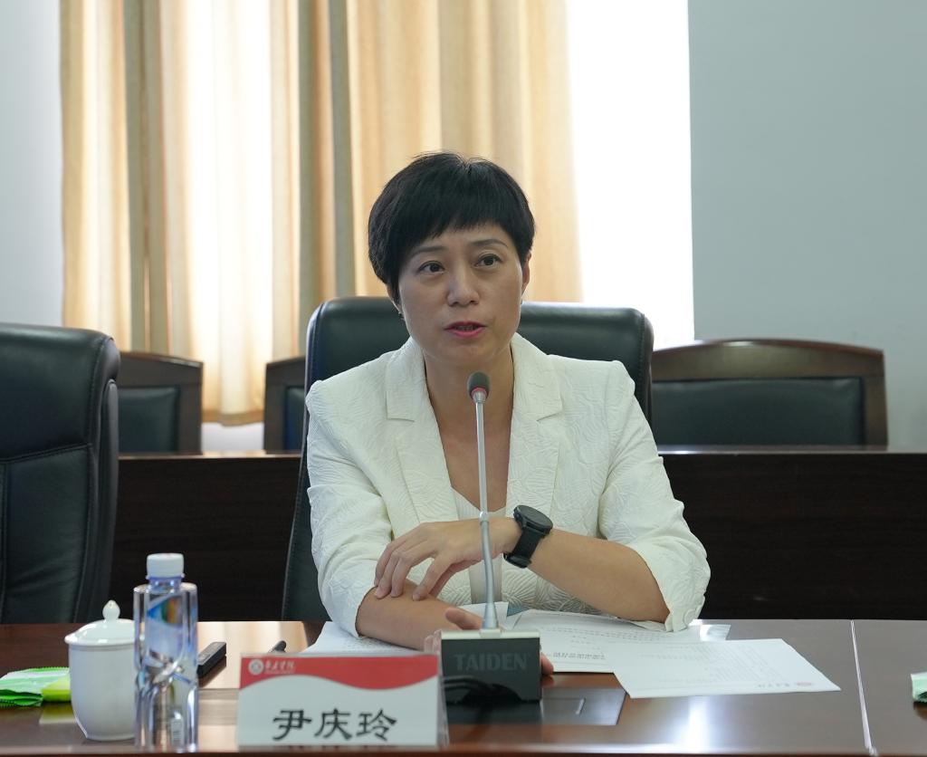 欣旺达集团总裁助理、欣旺达大学执行校长尹庆玲对学校的办学成就和产教融合成果给予高度评价,并现场播放了欣旺达的宣传视频和PPT,简要介绍了公司的基本情况和产教融合情况。尹庆玲重点从培养理念、培养模式、培养目标、岗位训练、结果运用等情况介绍了产教融合的框架以及技能人才培养过程。她表示,企业高度重视培养技能人才,希望双方共同探索产教融合、校企合作之路,以合作促发展、产教融通筑共赢的合作形式,在人才培养、资源共享、联合教学等多方面进行深度产学研合作,从而更好地借助学校师资优势,助力公司打造人才引进、人才发展的多维度、矩阵式的培养模式,为欣旺达培养更多高素质综合性人才,以实现优势互补、资源共享、合作共赢。