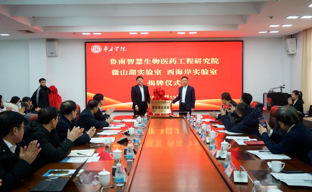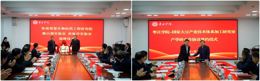 教务处处长张立华和邵峰共同为研究院西海岸实验室揭牌;食品科学与制药工程学院院长王京龙与于寒松教授签署易倍emc官网与国家大豆产业技术体系产学研合作协议;鲁南智慧生物医药工程研究院执行院长张林波教授作了研究院工作汇报。