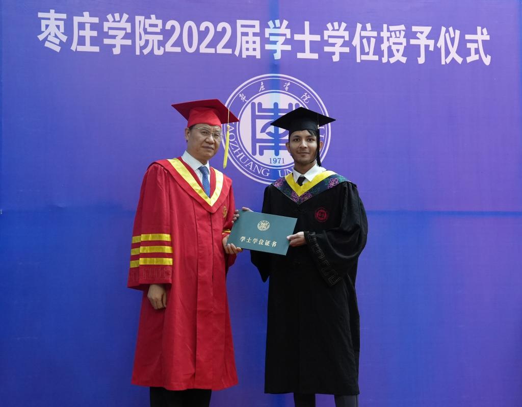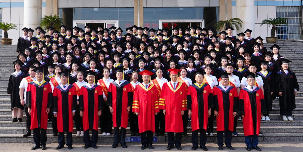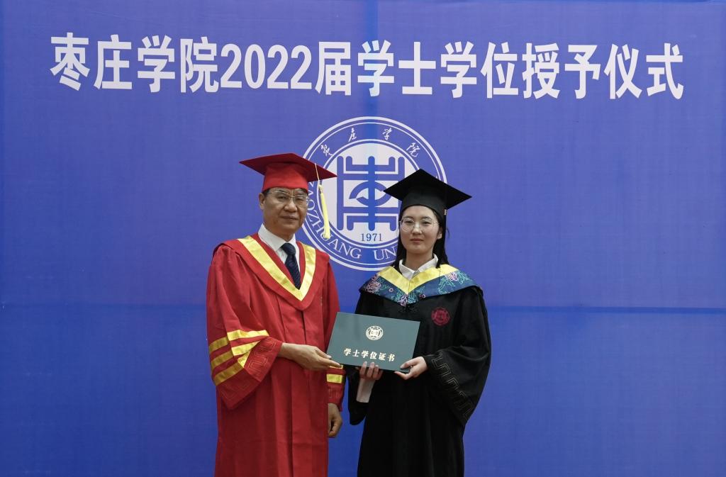 随后,116名毕业生代表满怀书山跋涉的喜悦,在欢快的音乐声中走上主席台,校党委副书记、校长李文喜依次为他们拨穗正冠、颁发学士学位证书并合影留念。