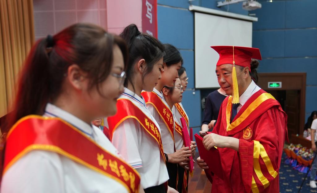 在毕业生即将踏上人生新征程之际,李文喜深情寄语同学们:一要坚定理想信念,胸怀报国之志,在服务国家和社会中成就自我。所谓“立志而圣则圣矣,立志而贤则贤矣”。希望同学们树立“请党放心,强国有我”的远大志向,自觉把个人小我融入到祖国的大我、人民的大我之中,主动瞄准社会需要,在拼搏奉献中实现人生价值。二要加强道德修养,明辨是非曲直,矢志追求有高度和境界的人生。“大学之道,在明明德”。希望同学们牢记“从善如登、从恶如崩”的道理,始终保持积极的人生态度、良好的道德品质,积极参加志愿服务、主动承担社会责任,努力使自己成为堪当大任的时代新人。三要练就过硬本领,勇于突破创新,不断提升青春远航的技能本领。大志非才不就,大才非学不成。希望同学们毕业后能够一直保持学习的紧迫感和主动性,努力掌握更多文化知识和专业技能,在工作岗位上创造出实实在在的业绩,努力成为强国伟业的生力军。四要不驰于空想,不骛于虚声,用青春与热血报效祖国和人民。任何伟大的事业,都始于梦想而成于实干。希望同学们立足本职工作接续奋斗,不断汇聚实现梦想的磅礴力量,以青春之我逐华夏之阳、担时代之责、建强国之功,把有限的青春转化为无限的可能,在青春的赛道上跑出最好成绩。