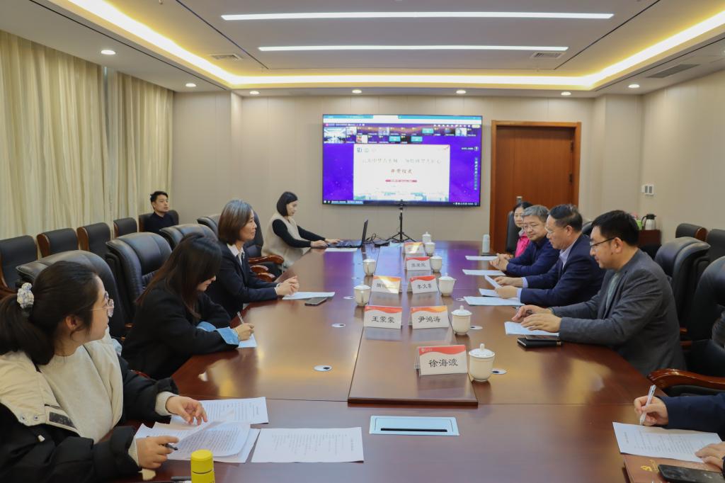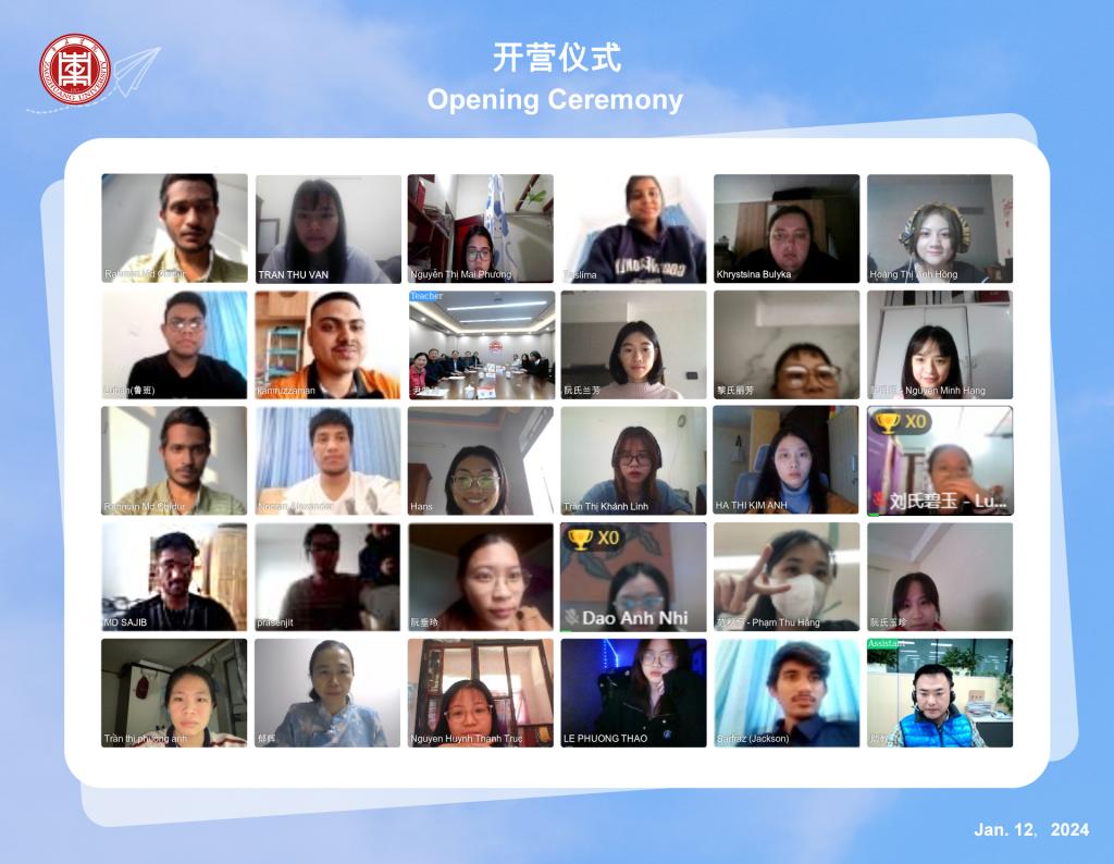 1月12日,由教育部中外语言合作交流中心主办、易倍emc官网承办的2024年“汉语桥”线上交流团组“云游中华古水城·领悟班墨大匠心”冬令营开营仪式在薛城校区明理楼519会议室以线上、线下相结合形式举行。校党委副书记、校长李文喜出席开营仪式。枣庄市委外办副主任田晓燕,我校文学院及宣传部相关负责同志参加开营仪式。“汉语桥”项目教师团队及来自俄罗斯、乌克兰、加拿大、越南、孟加拉、日本、喀麦隆等12个国家的三百余名学员通过云端参会。仪式由国际交流处处长尹鸿涛主持。
