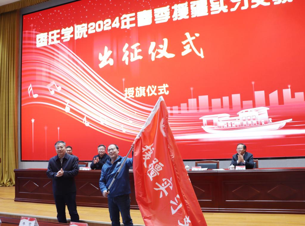 3月6日下午,我校在薛城校区崇德楼报告厅举行2024年春季援疆实习支教出征仪式。校党委书记高峰出席并讲话,校领导李目海、丰雷、安涛、武尚民出席仪式。校办公室、团委、教务处、学生工作处、计划财务处、保卫处等部门负责人,相关二级学院党政领导以及2024年春季援疆实习支教团全体师生近300人参加活动。仪式由校党委委员、副校长安涛主持。