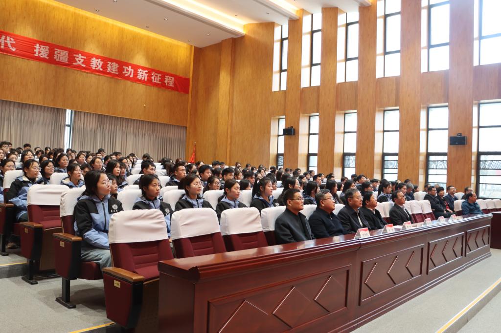 安涛在主持时指出,支教团师生带着学校的期望与重托,即将踏上驶向西北的列车,为祖国边疆教育事业发展贡献枣院力量,充分展现了支教师生的家国情怀、责任担当、远大理想抱负以及人生追求。希望支教团师生认真领会高书记讲话精神,坚定信念,脚踏实地,用实际行动展现枣院师生良好形象,续写援疆支教光荣篇章,为新疆教育事业发展和民族团结贡献“枣院”力量。