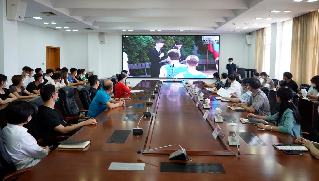 5月27日下午,我校与友好学校俄罗斯伏尔加格勒国立大学“体育运动国际联欢节”隆重开幕。校长李文喜出席开幕式并致辞。党委委员、副校长安涛,党委委员、宣传部部长张昌林出席开幕式。国际交流处、体育学院党政领导和师生代表在综合楼三楼会议室一同观看开幕式。