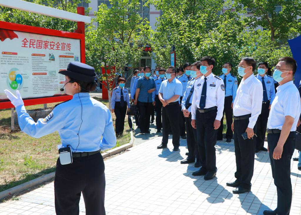 与会人员参观了我校警务室、总体国家安全观主题公园、校园110指挥中心,听取了警务室、总体国家安全观主题公园设计和使用、校园110指挥中心运转等情况介绍,观摩了保卫处的消防演练和突发事件处置演练。