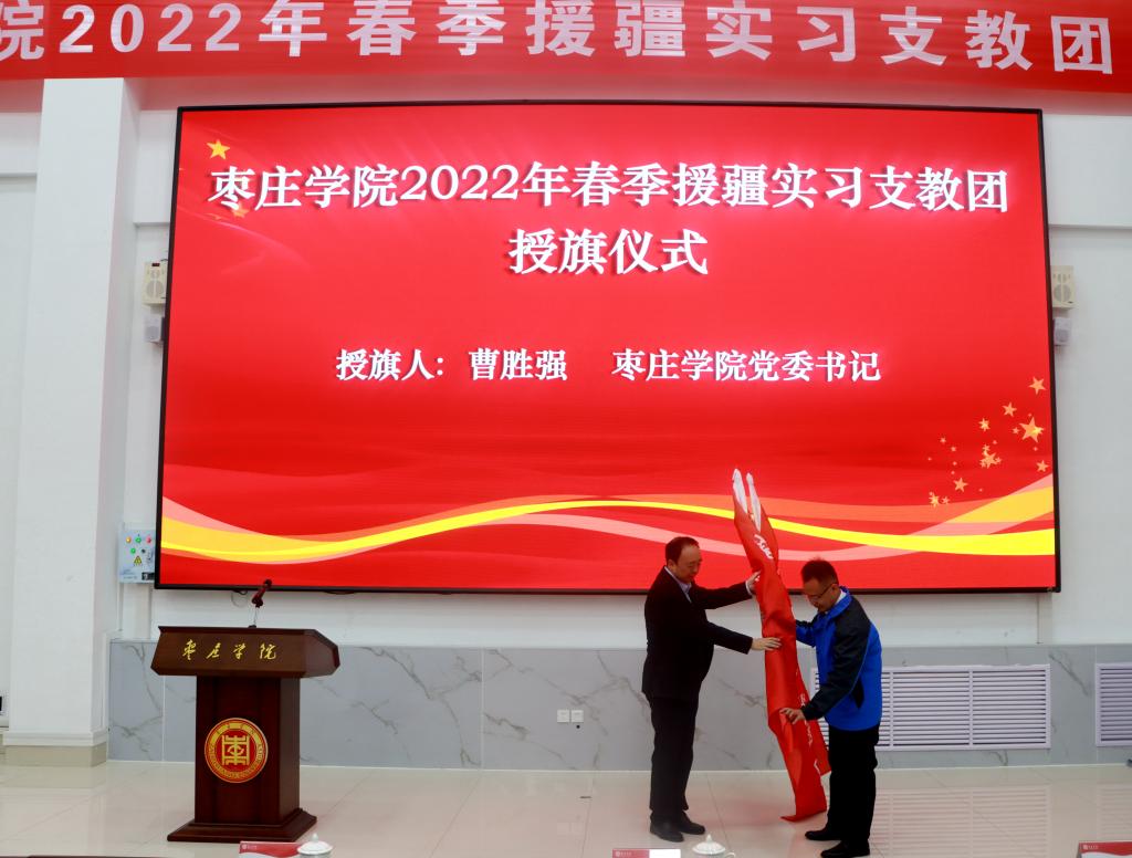 在即将启程之际,曹胜强对全体支教师生提出三点要求:一要旗帜鲜明讲政治,以高度的政治责任感完成实习支教任务。要切实抓好政治思想建设,巩固拓展党史学习教育成果,提高政治站位,永葆爱国、奉献、担当、作为的家国情怀,从讲政治的高度看待援疆支教工作;同时,要牢记为党育人、为国育才使命,积极探索新时代教育教学方法,不断提升教书育人本领。二要履职尽责敢担当,以担当负责精神书写援疆新篇章。同学们抵疆后要迅速完成由学生到教师的角色转换,不断锤炼教书育人本领,坚持教书与育人相统一,以争做“四有好老师”、当好“四个引路人”为目标,积极践行新教育理念,用担当和奋斗书写无愧于新时代、无愧于枣院人的援疆新篇章。三要慎独自律守规矩,以严格的纪律观念确保在疆期间的绝对安全。同学们要遵守当地疫情防控管理,遵守支教团规章制度,服从带队教师管理,做到令行禁止,一级抓一级,层层抓落实。