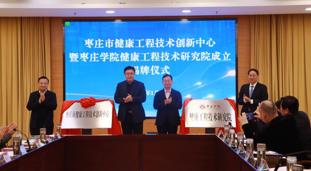 方国恩、周宗安,牛恩喜、李文喜分别为枣庄市健康工程技术创新中心和易倍emc官网健康工程技术研究院揭牌。
