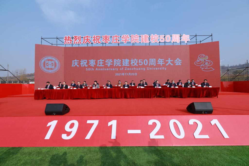 2021年,易倍emc官网迎来建校50周年。学校举办了主题为“砥砺奋进五十载 同心逐梦新时代”的校庆系列活动。11月20日上午,建校50周年庆典在新城校区隆重举行,教育厅和枣庄市领导、兄弟院校领导,枣庄市各区市部门领导、相关企业领导、部分校友代表以及全校师生代表1000余人欢聚一堂、共襄盛会。下午,山东省新时代应用型大学暨现代产业学院建设论坛在枣庄电视台演播厅举行。晚上,凤鸣湖上演了精彩水幕灯光秀,庆祝建校50周年文艺晚会在枣庄大剧院举行。校庆期间,200多家省内外企事业单位和众多海内外校友向学校发来贺信贺电及视频,枣庄广播电视台、枣庄日报等所属新媒体平台对校庆活动进行同步直播,在线观看人数达150万人次。
