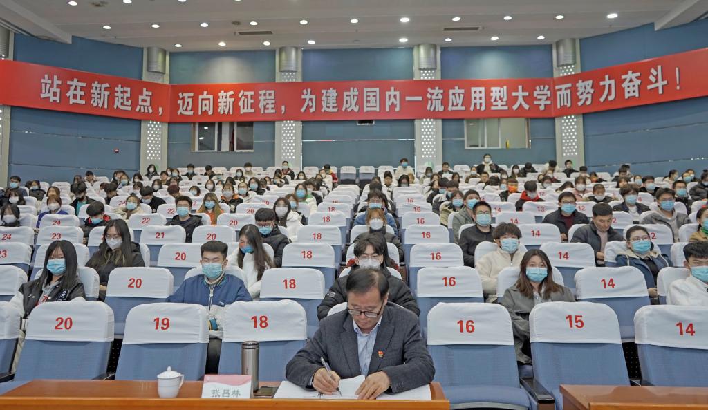 按照市委统一部署,12月15日下午,市委宣讲团成员、市委党校教务处孙宝华教授莅临我校,在综合楼学术报告厅为师生作党的十九届六中全会精神宣讲报告。校党委委员、宣传部部长张昌林主持报告,市中校区学院团总支书记、辅导员、学生代表等200余人到场聆听报告。