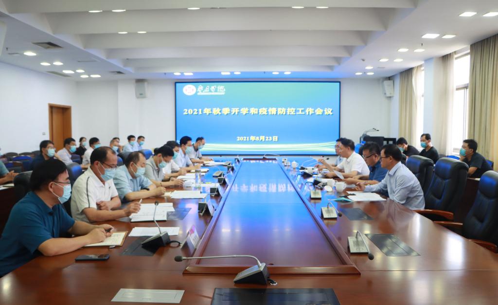 8月23日上午,我校在综合楼三楼会议室召开2021年秋季开学和疫情防控工作会议。校长李文喜,党委委员、副校长丰雷、安涛,党委委员、宣传部部长张昌林出席会议。办公室、学生工作处、教务处、计划财务处、后勤服务处、保卫处、校医院负责人,各二级学院党总支书记参加会议。会议由安涛主持。