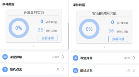 介绍课程内容,分享线上课程资源给学生,让学生自己计划学习时间,尽快进入学习状态。慕课的《财务管理学》内容与课程基础知识较为匹配,让学生以线上课程为主,雨课堂在线授课用来补充旅游专业相关知识和答疑。智慧树的《导游知识与讲解实战》与授课计划内容差距较大,线上资源作为补充内容,还是以雨课堂在线授课为主。